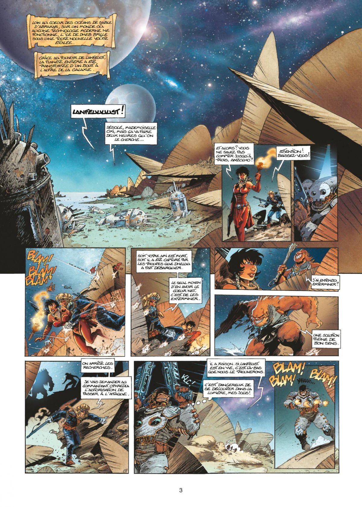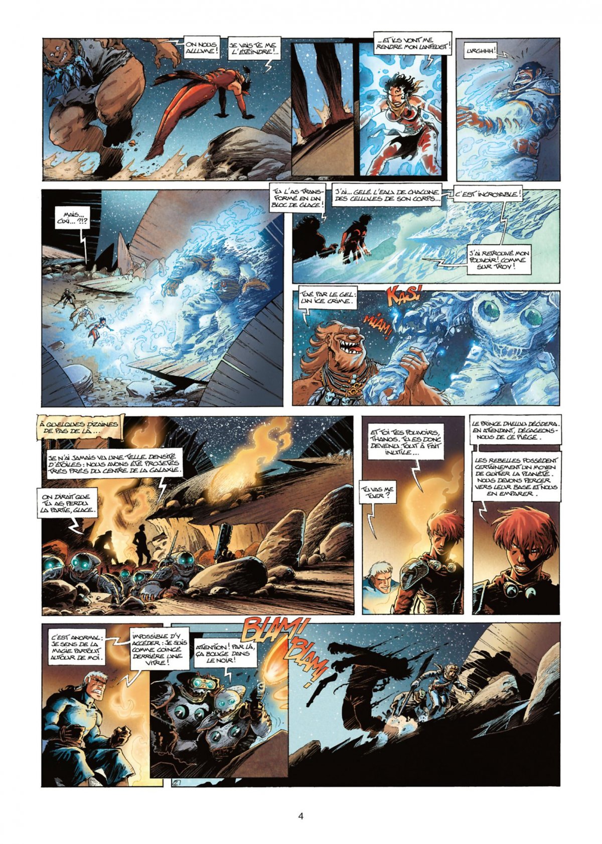 Abraxar, siège de la résistance contre la domination des princes marchands, vient d’être envahie par les hommes de Dheluu. À leur tête, Thanos et l’agent Glace. Mais Lanfeust a tenté une manoeuvre désespérée : faire passer la planète entière à travers une porte pour l’expédier... loin. Ce qu’il n’avait pas prévu, c’était un choc en retour qui les enverrait, lui et Swiip, quatre mille ans dans le passé.