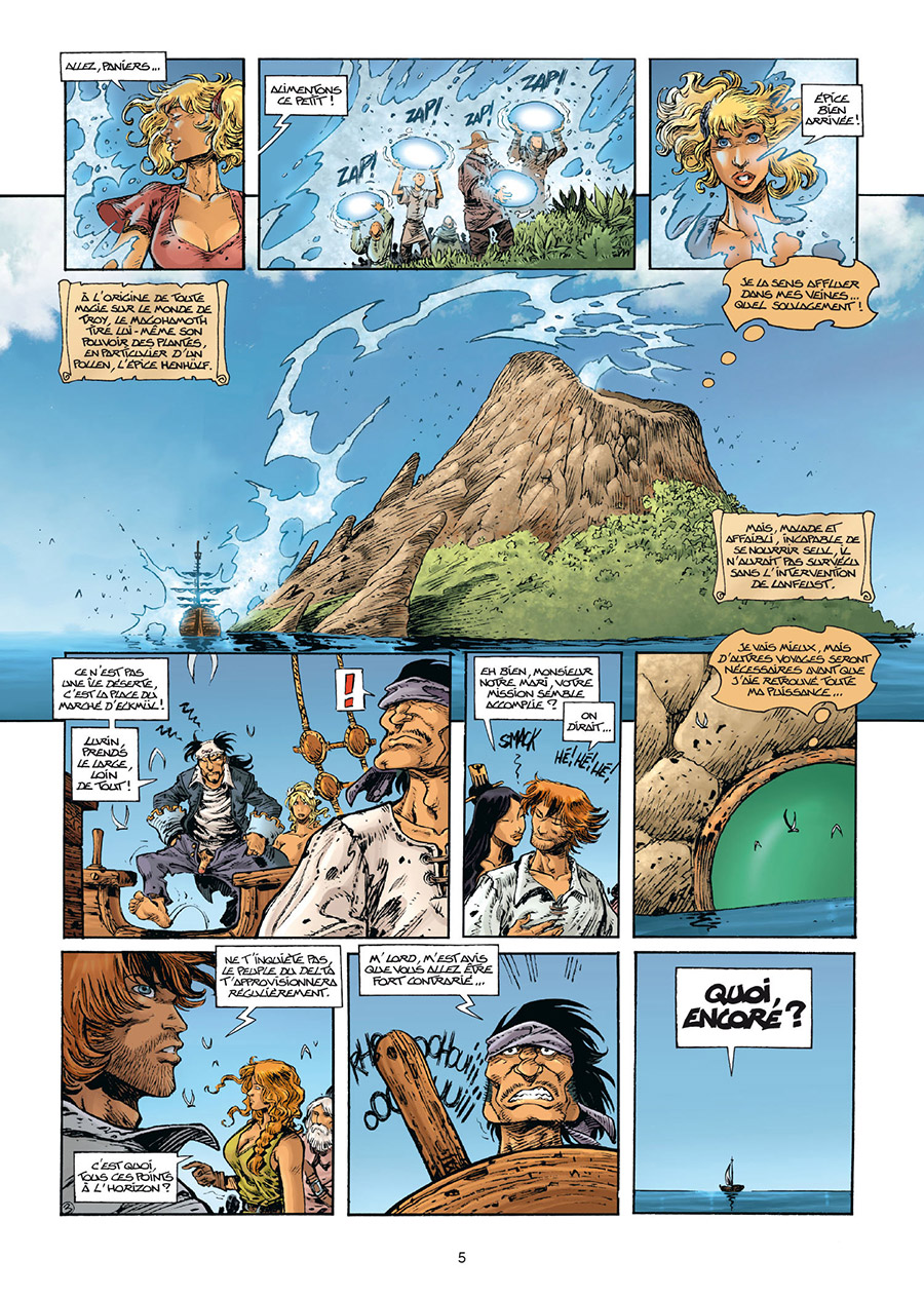 Lanfeust et ses quatre épouses peuvent enfin donner au Magohamoth l’épice qui va régénérer l’animal de magie. Mais ils sont rejoints par Lylth, la dévoreuse de mondes, qui traque toujours la bête fabuleuse à bord d’une armada où elle a fait embarquer tous les habitants d’Eckmu ?l. Parmi eux, Hébus le troll et quelques sages du conservatoire, qui sont les seuls à ne pas être hypnotisés par la déesse. Lanfeust, déguisé, va rejoindre Hébus mais c’est au milieu d’un mystérieux continent d’algues et de ses habitants que va se dénouer cet épisode...