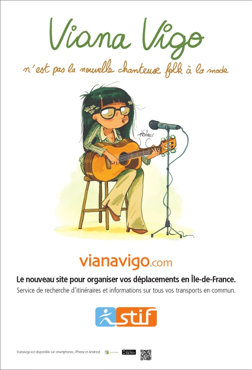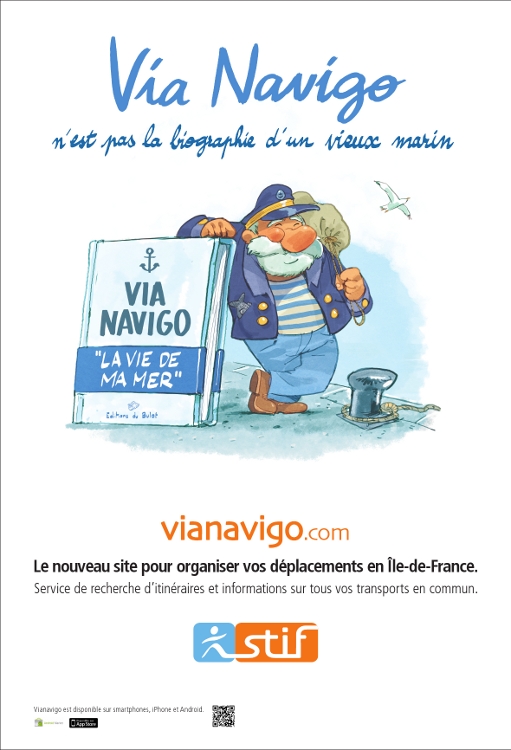 Le Syndicat des Transports d’Île-de-France s’est attaché les services du créateur de Mamette et Mon Ami Grompf pour promouvoir son nouveau site de recherche d’itinéraires vianavigo.com et les applications iPhone et Android qui lui sont associées. Nob s’est en effet vu confier la réalisation de quatre visuels que l’on retrouvera du 6 au 19 février prochain dans les lieux publics sous forme d’affiches, mais aussi dans la presse et sur le web. Un travail de commande, mais suffisamment sympathique pour qu’il vaille la peine qu’on en parle. C’est chose faite !