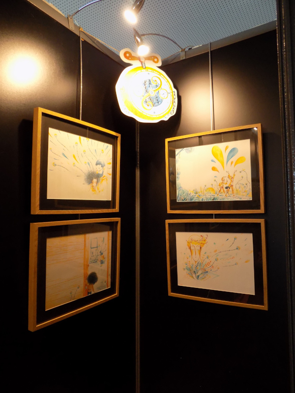 La scénographie, signée Anne des Prairies, accompagnait avec sobriété cette immersion tout en respectant la douceur chromatique et la fluidité du trait de l’autrice. L’exposition était une co-production du festival Quai des Bulles et des Éditions de la Gouttière, éditeur historique de plusieurs de ses albums.