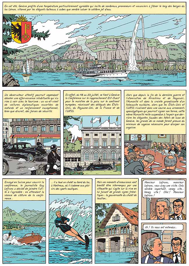 Trois ans après la parution de La grande menace, Jacques Martin mettait en chantier l’aventure qui devait prendre la suite de cet album. Mais, accaparé par d’autres travaux, Jacques Martin interrompit cette histoire alors qu’une seule planche était mise au net. L’histoire inachevée fut oubliée dans un tiroir pendant un demi-siècle... jusqu’à la redécouverte récente de crayonnés et d’un synopsis, qui ont relancé l’aventure ! En pleine Guerre froide, les représentants de quatre grandes puissances se réunissent à Genève dans l’espoir d’un rapprochement Est-Ouest, tandis qu’Américains et Soviétiques continuent leurs tests nucléaires. Sensibilisé au problème de la menace atomique, Lefranc se rend sur place pour couvrir l’événement. C’est alors qu’il se trouve être le dépositaire de l’ultime courrier envoyé par un savant atomiste français, qui vient de périr dans des circonstances aussi mystérieuses que dramatiques