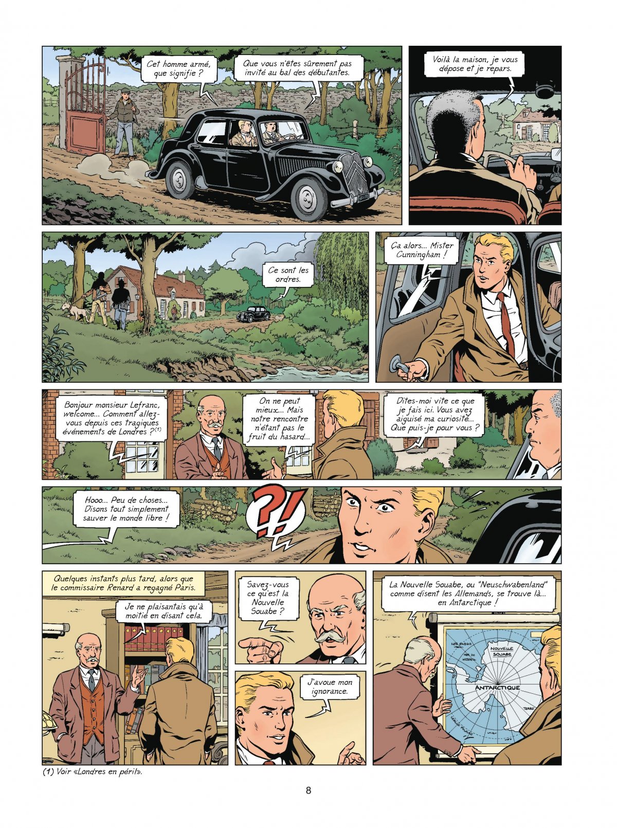 Cette aventure rocambolesque, qu’il fera en compagnie d’Axel Borg, le conduira en dirigeable jusqu’en Antarctique dans la base de la nouvelle Souabe où ils devront se démener pour mener à bien leur mission.