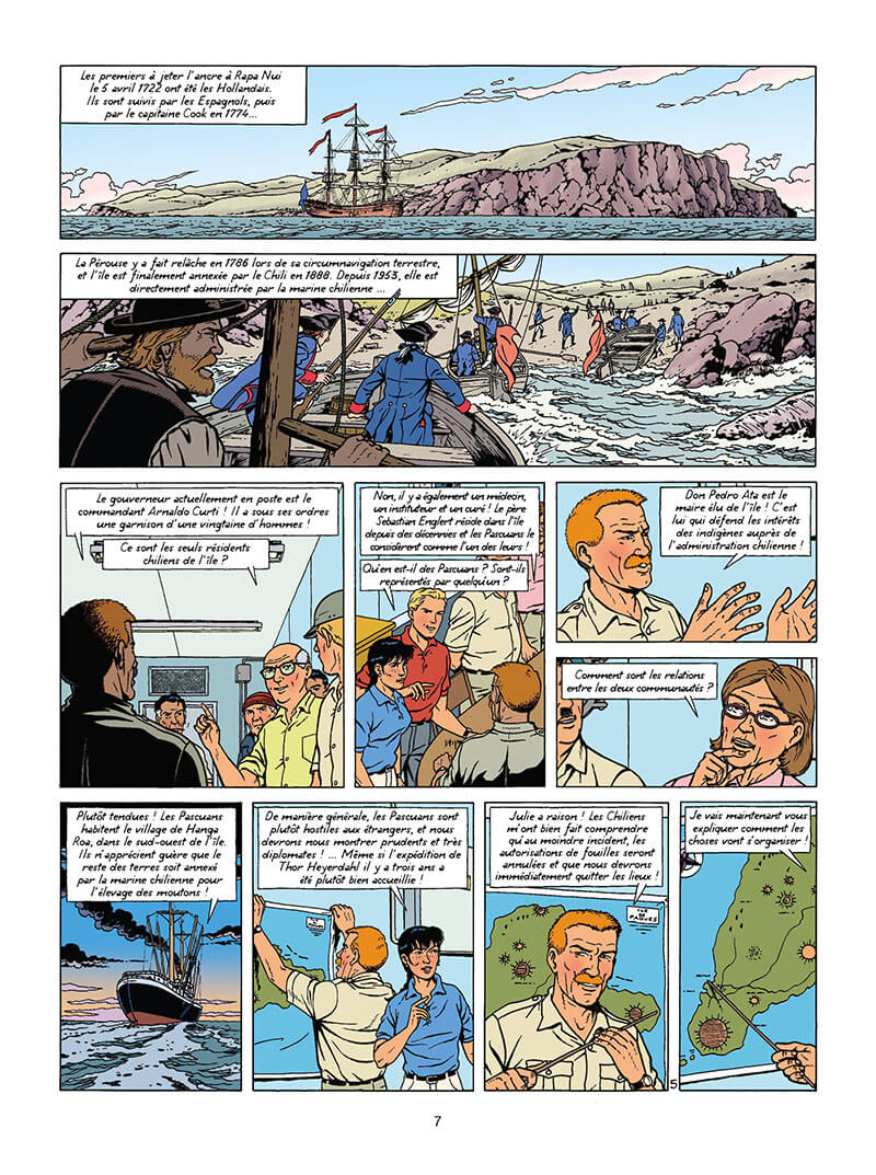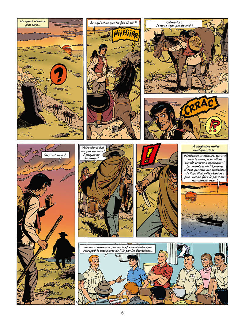 1959. Ile de Pâques. Lefranc accompagne une expédition scientifique pour résoudre le mystère des statues monumentales de l’île. Mais les travaux vont très vite être perturbés par d’étranges phénomènes. Un engin non identifié s’écrase sur l’île. Il n’en faut pas plus pour que les habitants y voient le signe de l’Homme-oiseau, le dieu Makemake. Pourtant, Lefranc a des doutes. Pourquoi une corvette avec Axel Borg à son bord rode au large de l’île et que vient faire ce sous-marin russe dans les parages ? Une crise internationale pourrait être sur le point d’éclater !