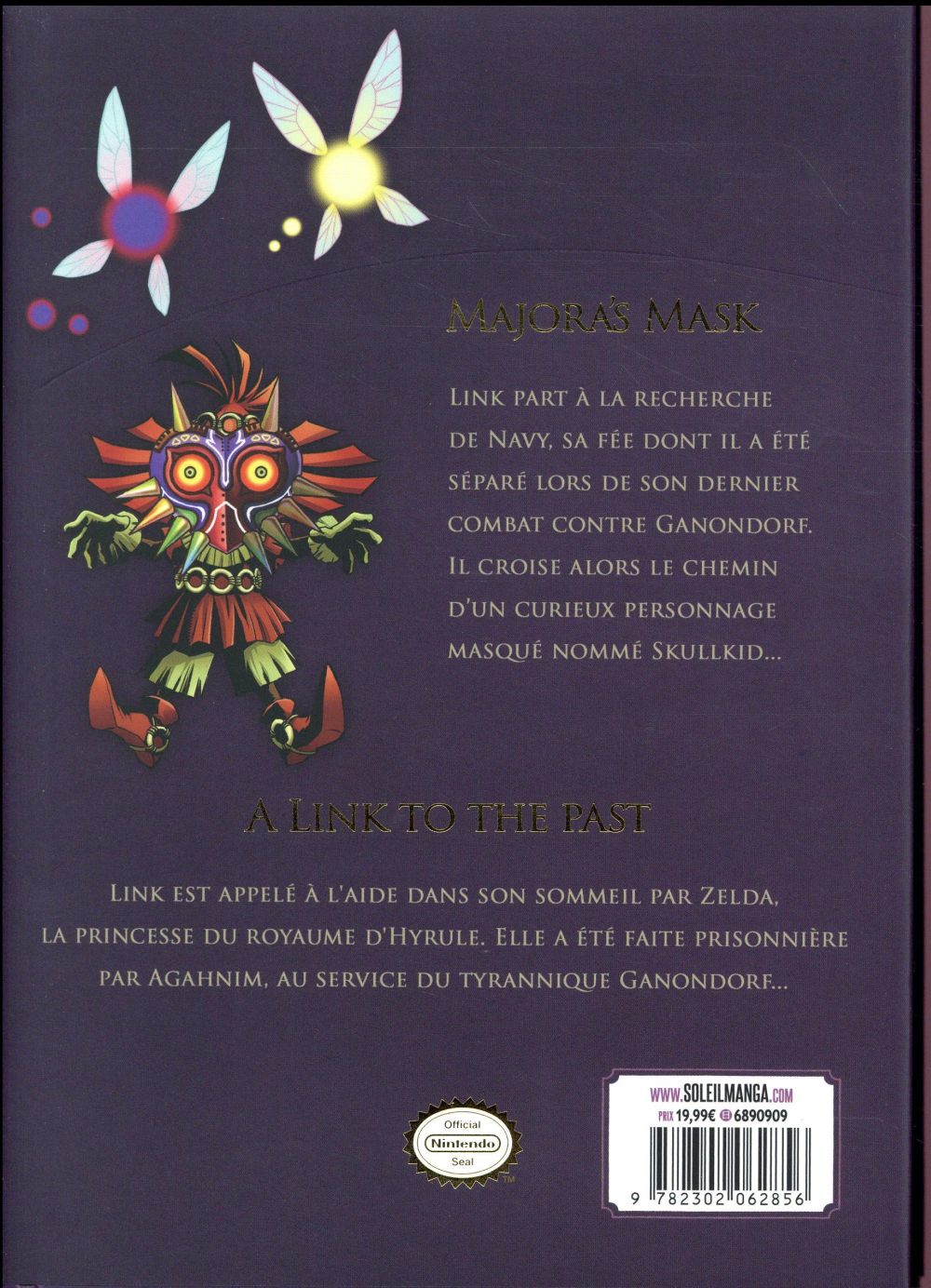 Découvrez une nouvelle histoire de Link en manga, adaptée du jeu vidéo le plus vendu au monde en version de luxe avec 16 pages couleur ! Dans Majora’s Mask Link part à la recherche de Navy, sa fée dont il a été séparé lors de son dernier combat contre Ganondorf. Il croise alors le chemin d’un curieux personnage masqué nommé Skullkid... Dans A link to the past Link est appelé à l’aide dans son sommeil par Zelda, la princesse du royaume d’Hyrule. Elle a été faire prisonnière par Aghnim, au service du tyrannique Ganondorf...