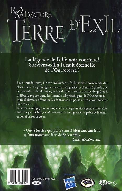 La légende de l’elfe noir continue ! Survivra-t-il à la nuit éternelle de l’Outreterre ? Loin sous la terre, Drizzt Do’Urden a fui la société corrompue des elfes noirs. Le jeune guerrier a soif de justice et d’amitié plutôt que de pouvoir et de violence, et il sait que sa seule chance de goûter à la liberté repose dans les tunnels labyrinthiques de l’Outreterre. Mais il devra y affronter les fantômes du passé et les abominations du présent...Pendant ce temps, son impitoyable famille poursuit sa guerre fratricide. Pour traquer Drizzt, sa mère enverra le seul guerrier capable de le tuer... Et de lui briser le coeur.