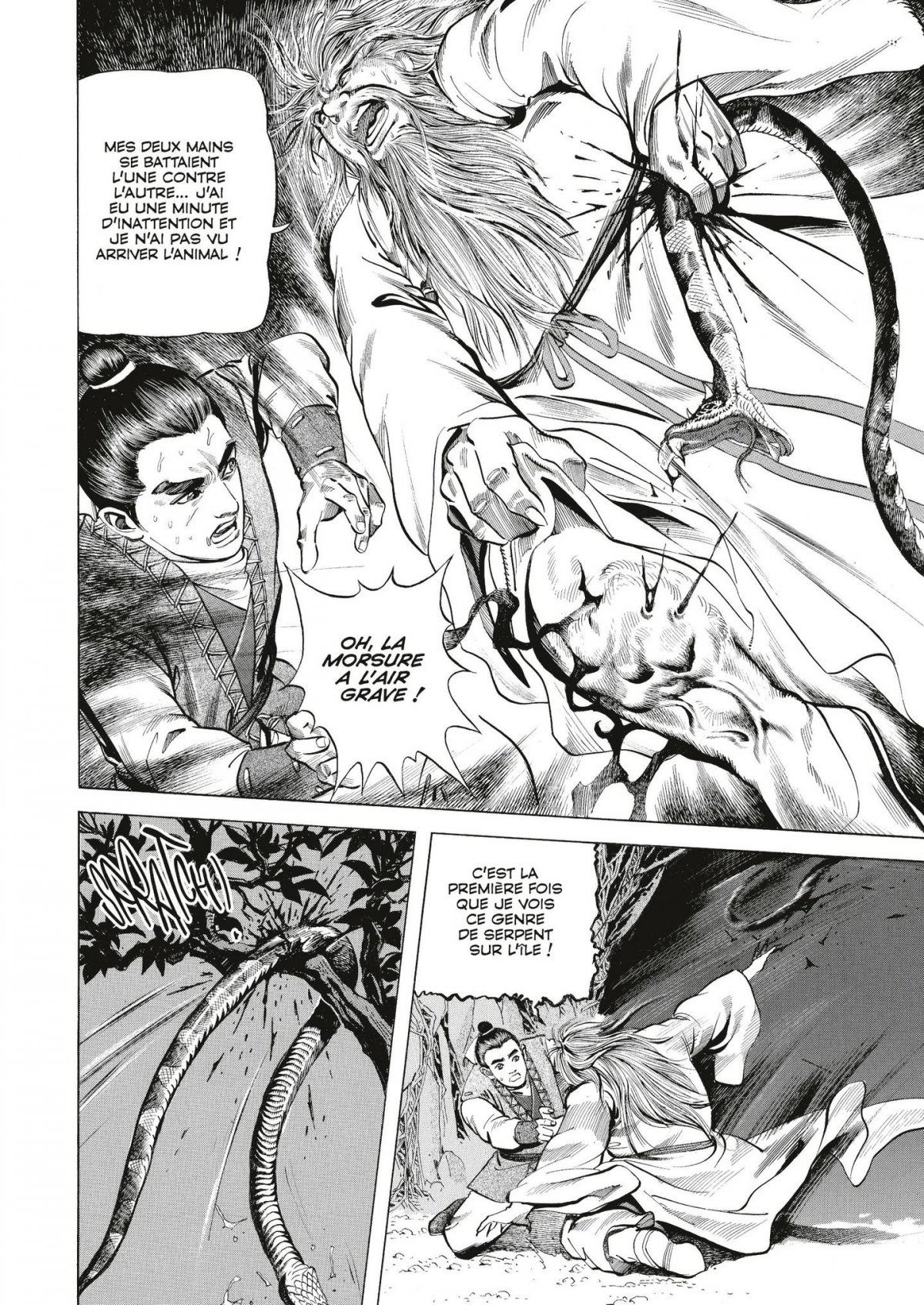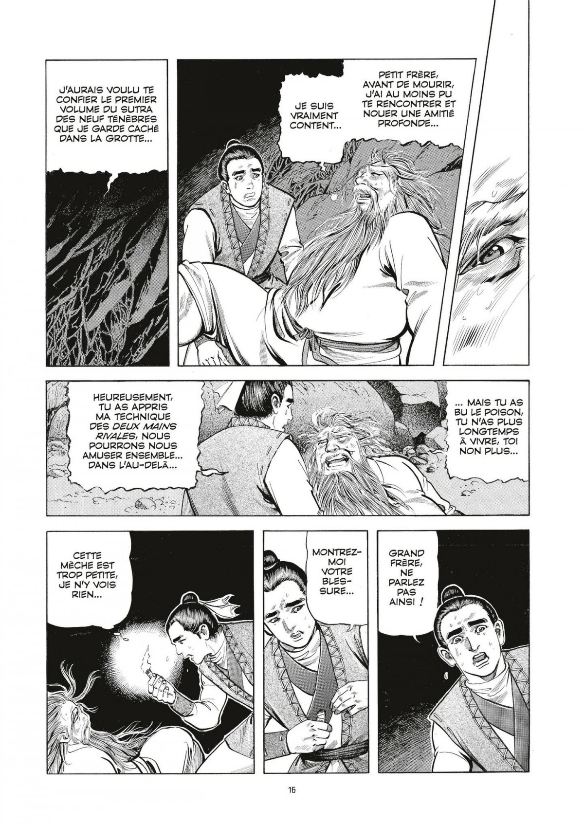Grâce à l’entraînement de Hong le septième vénérable, Guo Jing a nettement progressé. Il reprend donc la route avec Huang Rong, et tous deux font halte à la résidence du nuage nostalgique, où Yang Kang est retenu prisonnier. C’est alors que la sanguinaire Mei Chaofeng fait son apparition, en quête de vengeance : toute cette violence semble graviter autour du Sutra des Neuf Ténèbres.