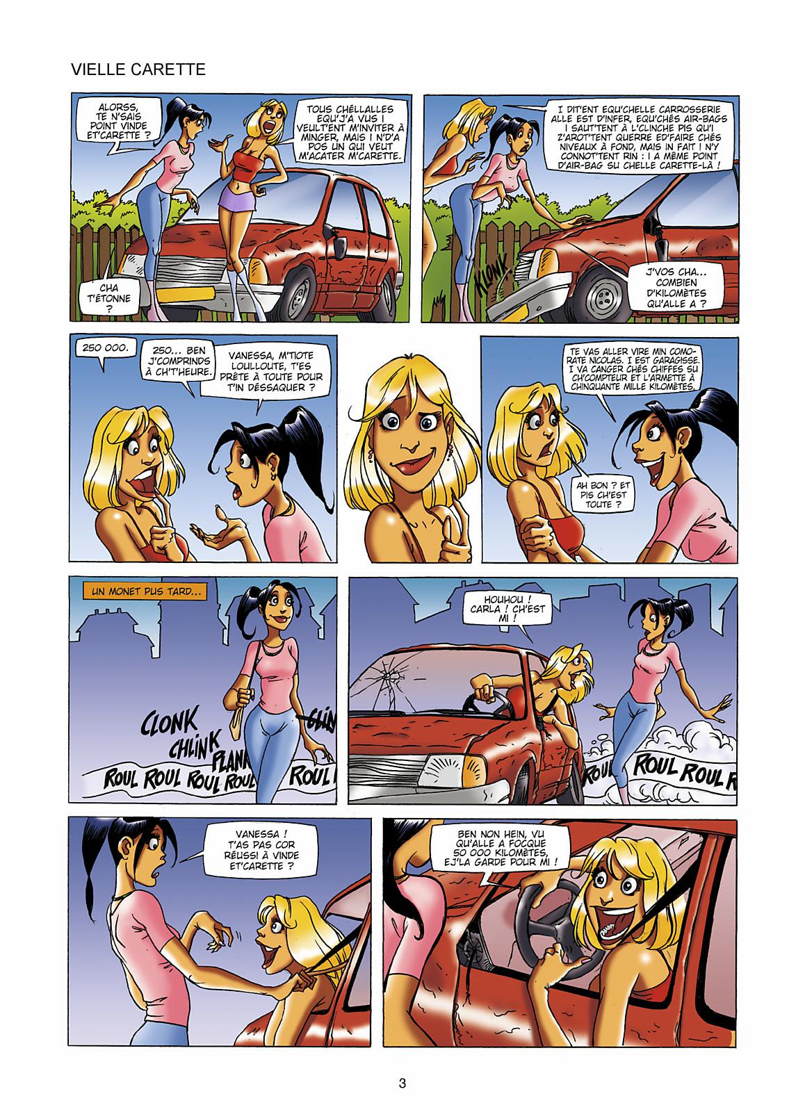 Il contient des gags inédits des Blondes réalisés spécialement à cette occasion.En cadeau, le jeu de l’oie des Blondes ! Quand Vanessa et ses copines alles déchid’tent ed’s’in aller à l’montane pis après à la mer, quo qu’ch’est qu’alles font ? Comme tertous, alles prenn’tent eune carte routière