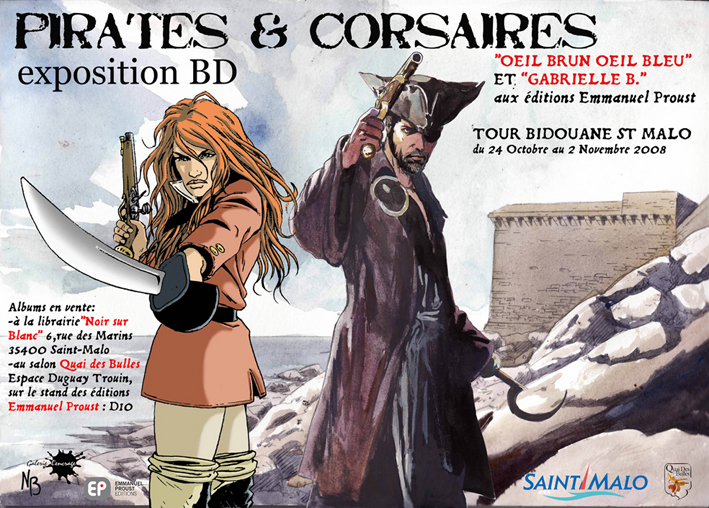 Planches originales, esquisses, croquis et recherches graphiques, projections, objets et costumes d’époque seront présentés jusqu’au 2 novembre par les éditions Emmanuel Proust, en partenariat avec la librairie Noir sur Blanc, la ville de Saint-Malo, le festival Quai des Bulles et la galerie L’encrage à Brest, tandis que les quatre auteurs seront en dédicace à l’Espace Duguay-Trouin durant tout le festival.