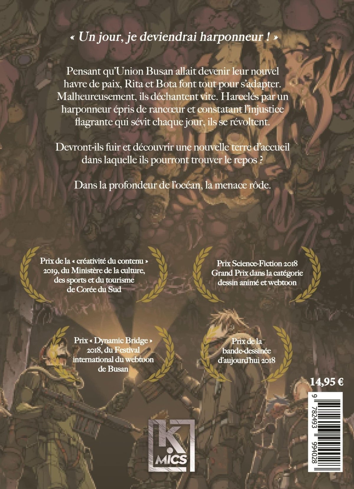 Pensant qu’Union Busan allait devenir leur nouvel havre de paix, Rita et Bota font tout pour s’adapter. Malheureusement, ils déchantent vite. Harcelés par un harponneur épris de rancoeur et constatant l’injustice flagrante qui sévit chaque jour, ils se révoltent. Devront-ils fuir et découvrir une nouvelle terre d’accueil dans laquelle ils pourront trouver le repos ? Dans la profondeur de l’océan, la menace rôde.