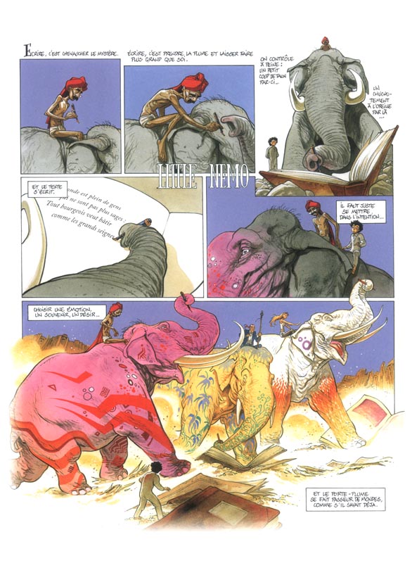 La bande dessinée Little Nemo in Slumberland de Winsor Mc Cay, parue de 1905 à 1914 dans les journaux américains New York Herald et New York American est une oeuvre « culte » de la bande dessinée mondiale. Elle a influencé de nombreux auteurs et contribué à créer les codes de la narration séquentielle. Hymne à l’onirisme et à l’enfance, emprunte de surréalisme et d’influences Art nouveau, Little Nemo réunissait qualité graphique et audace scénaristique. Frank Pé, dessinateur belge à l’univers poétique auteur des séries Zoo et Broussaille, où l’on peut admirer son talent pour le dessin animalier, rend hommage aujourd’hui à cette oeuvre majeure et nous en livre sa propre interprétation dans de magnifiques planches travaillées en couleur directe. Little Nemo y explore le monde du rêve et rencontre les créatures fabuleuses d’univers incroyables issus d’un imaginaire sans limites. Chaque nuit, le garçon voyage dans son sommeil, se perd, s’interroge, pour se réveiller dans un monde réel beaucoup trop sérieux à son goût !