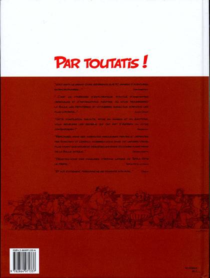 " Voici enfin le grand livre référence sur 40 années d’aventures extraordinaires... " Vercingétorix " ...C’est un itinéraire d’explorateur, ponctué d’anecdotes originales et d’informations inédites, où vous traverserez la Gaule, les frontières, et voyagerez jusqu’aux horizons les plus lointains... " Jules César " Cette compilation insolite, riche en images et en émotions, vous révèlera les secrets qui ont fait d’Astérix un mythe contemporain ! " Panoramix " Replongez dans des ambiances fabuleuses peintes et dépeintes par Goscinny et Uderzo, immergez-vous dans cet univers visuel plus vivant que nature et dégustez les gags toujours aussi frais de la Gaule antique... " Ordralfabétix " Délectez-vous des fameuses citations latines de Triple-Patte le pirate... " Triple-Patte, le pirate " Et moi, évidemment, personne ne me demande mon avis... " Obélix