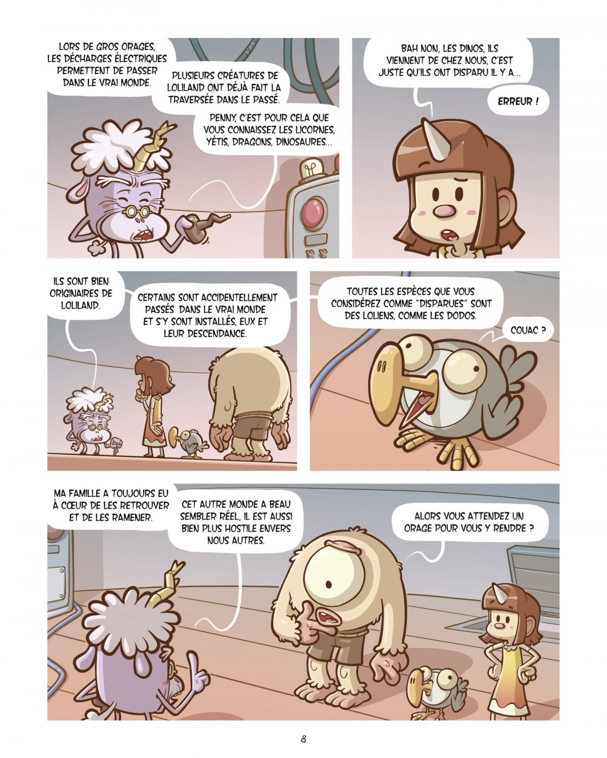 Penny est une jeune humaine qui s’est retrouvée un jour dans le monde merveilleux peuplé de créatures mythiques de Loliland. Elle porte sur le front une étrange corne et n’a plus que de vagues souvenirs du monde d’où elle vient. Mamy Loly, maire de Loliland, décide de la renvoyer chez elle. Non par pure bonté d’âme mais pour aller récupérer Véra, sa petite-fille qui a fui dans le « monde réel » et qui est l’héritière légitime du trône de Loliland. Car en l’absence d’héritière au trône de Loliland, celui-ci reviendra de droit à Flammèche, roi de Drakkonie. Ce dernier décide d’ailleurs, avec ses sujets dragons, d’envahir préventivement Loliland. Penny sauvera-t-elle le monde de Loliland ? Décidera-t-elle de regagner définitivement le monde réel ? Allez savoir... Lolicornes, c’est une fable fantaisiste pleine d’humour et de rebondissements qui ne s’interdit pas de faire réfléchir à des thématiques plus sérieuses comme les discriminations ou les dérives du pouvoir.