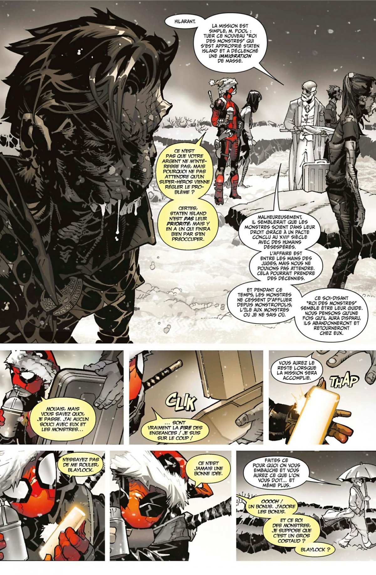 Les monstres de l’Univers Marvel se sont installés au large de New York, sur Staten Island, et ont fait de Deadpool leur roi ! Le Mercenaire Disert va devoir gérer ses nouvelles responsabilités et affronter bien des ennuis… dont Captain America, Elsa Bloodstone et Kraven