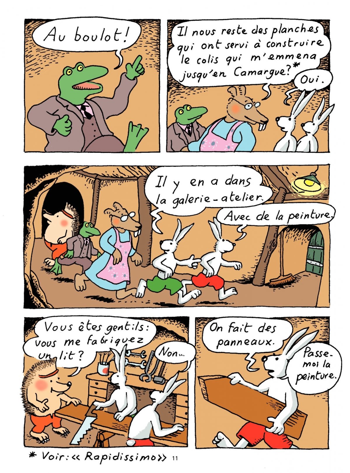 Ce soir-là, le crapaud conduit chez Louisette un visiteur inattendu : un hérisson en chemin pour le fameux pèlerinage de Sainte Pougne. Le crapaud vient miraculeusement de lui sauver la vie, sur la grand’route où il a manqué de se faire écrabouiller par une voiture ! Celui-ci est sauvé, mais qu’arrivera-t-il aux autres hérissons qui traverseront la voie, si personne n’intervient ? Ni une ni deux, Louisette et ses amis lapins adoptent un plan d’urgence : mettre en place une déviation ! Et peut-être même mieux : un tunnel, qui permettrait à tous de ressortir de l’autre côté de la route, sains et saufs ! Mais ce que Louisette ignore encore, c’est que les galeries qui parcourent le sous-sol abritent une créature bien peu sympathique : un serpent...