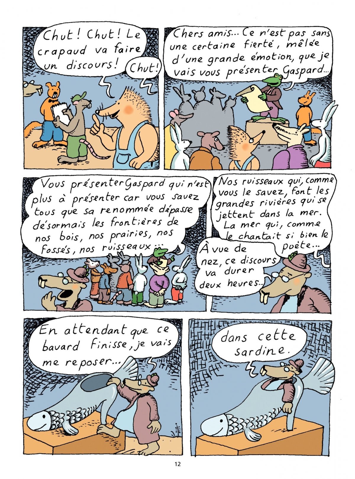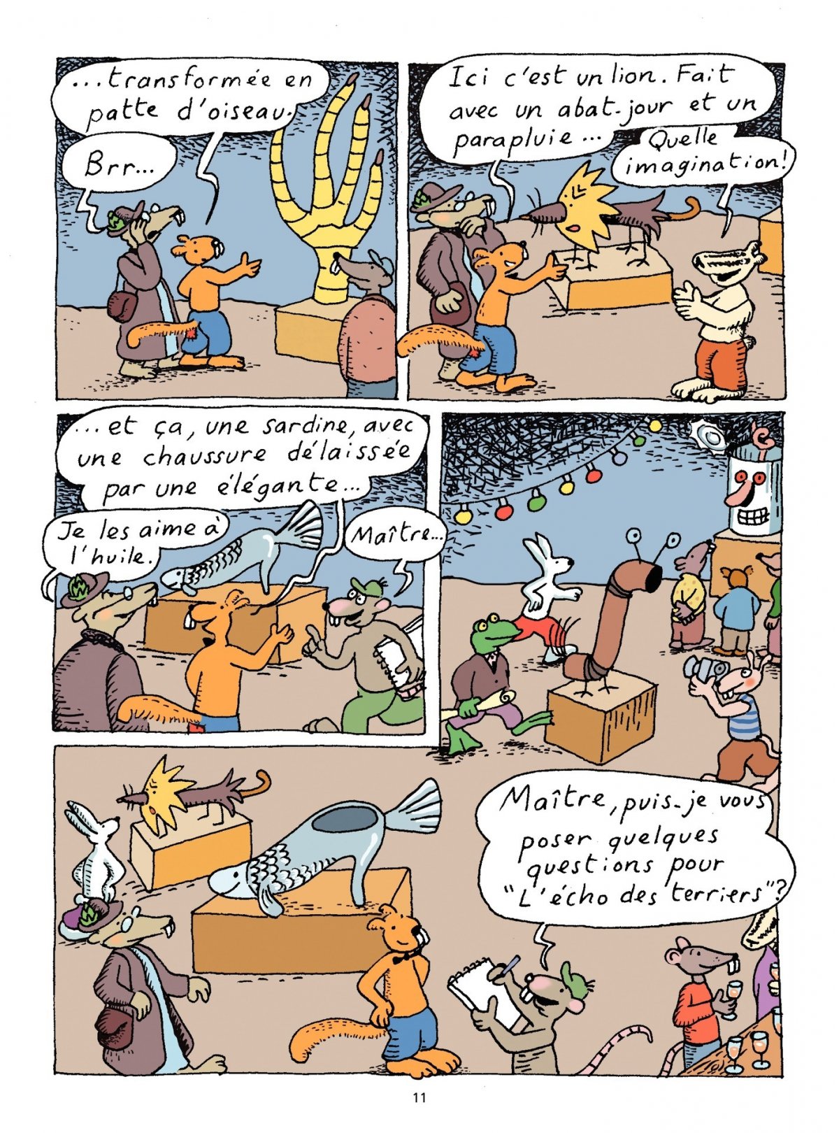 Louisette la taupe est invitée à un vernissage chez Gaston l’écureuil ! Gaston n’est pas n’importe qui... C’est un grand artiste, spécialisé dans l’art brut : il transforme bols, tuyaux, fourchettes ou boîtes de conserves en oeuvres d’art. Mais Louisette n’est pas une mondaine... elle se lasse vite de cette soirée et trouve refuge dans un drôle de lit. Il s’agit en réalité d’une vieille chaussure, transformée en un gros poisson par l’artiste ! Une mouette affamée qui survole les lieux enlève le poisson-chaussure... et Louisette par la même occasion ! Si tous ses amis s’affolent, ce n’est pas le cas de Louisette qui pense qu’on la ramène tranquillement chez elle... Voici notre amie la taupe partie pour de nouvelles aventures !