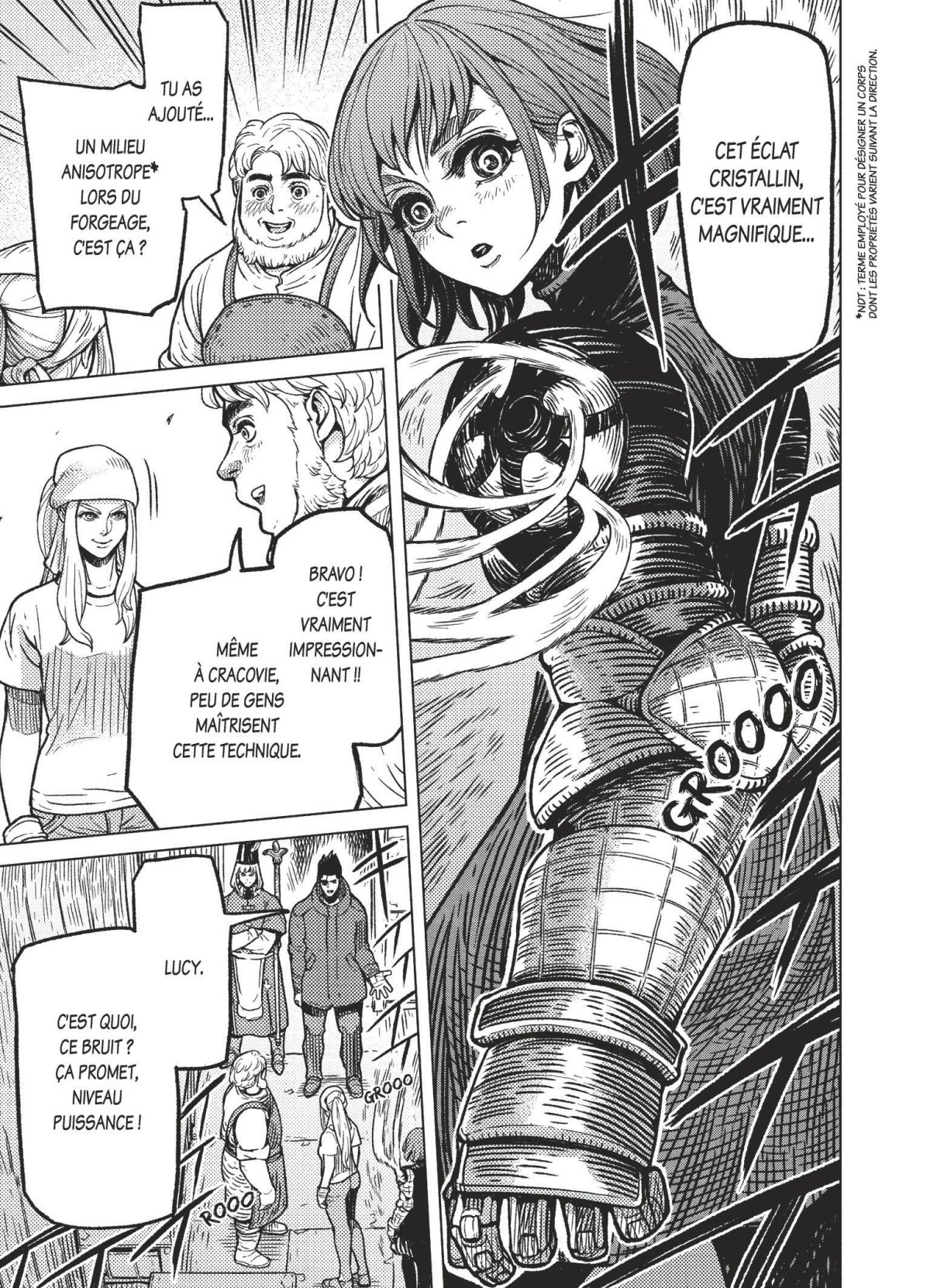 Armée de sa nouvelle armure, Lucja entre dans l’arène pour le combat décisif l’opposant au cruel capitaine des hussards. Une bataille acharnée commence alors. Pendant le combat, Albert révèle la raison de sa haine envers les chevaliers-vapeurs, et nous en apprenons davantage sur son passé. Cependant, sa haine ne suffit pas pour vaincre la chevaleresse aux poings d’acier, qui remporte la victoire. Après avoir fait innocenter Lucy et son maître, Lucja part à la rencontre du roi-chevalier, pour atteindre son prochain objectif...L’auteur conclut avec brio les aventures de Lucja, chevaleresse aux poings d’acier.