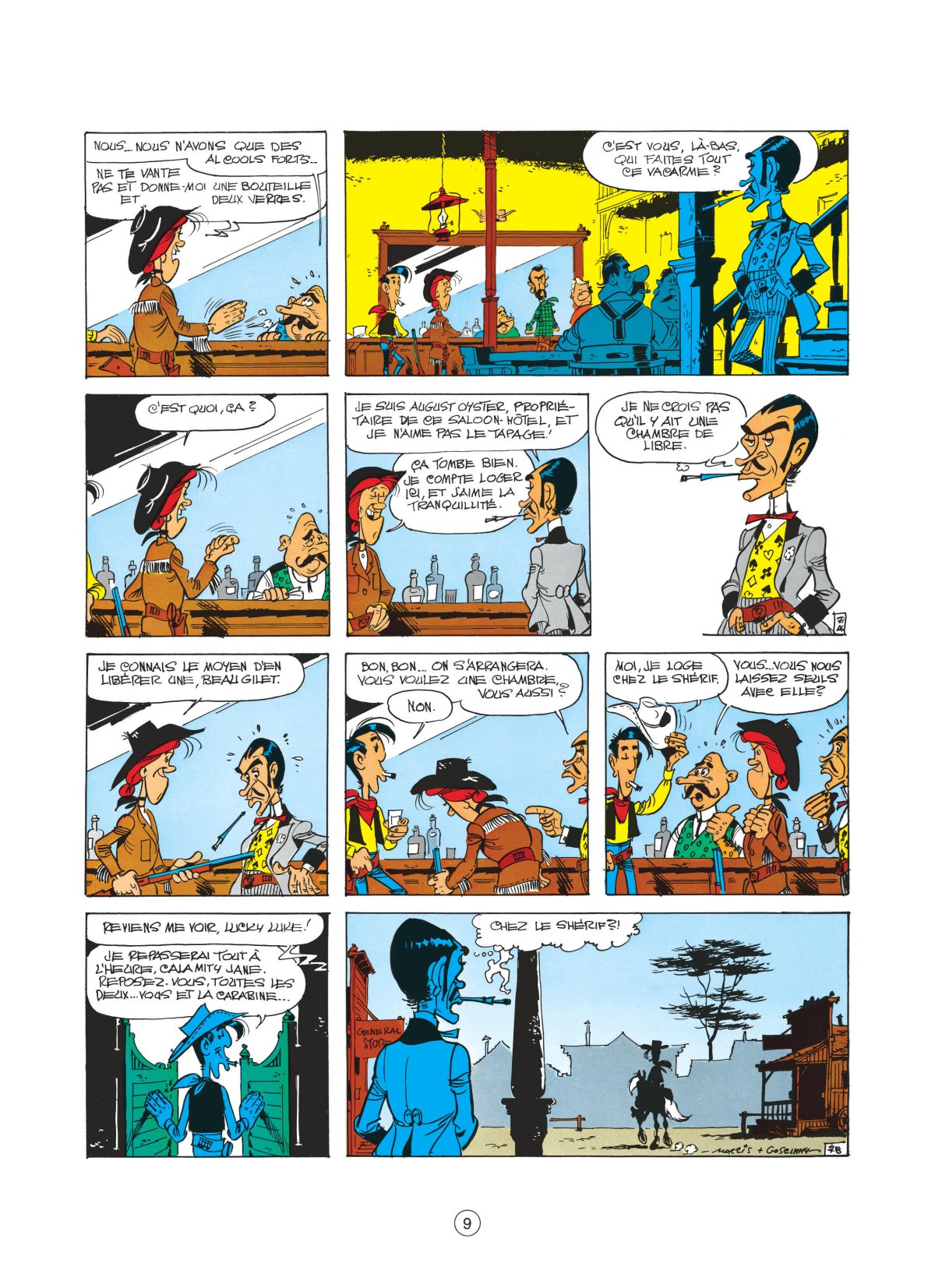 Arrivé en ville, le duo se rend au saloon-hôtel, dirigé par l’antipathique August Oyster. Ce dernier n’apprécie guère la venue de la bruyante aventurière (qui s’impose dans l’établissement alors que ce dernier est interdit aux femmes), ni celle de Luke, qui semble suspect à ses yeux.