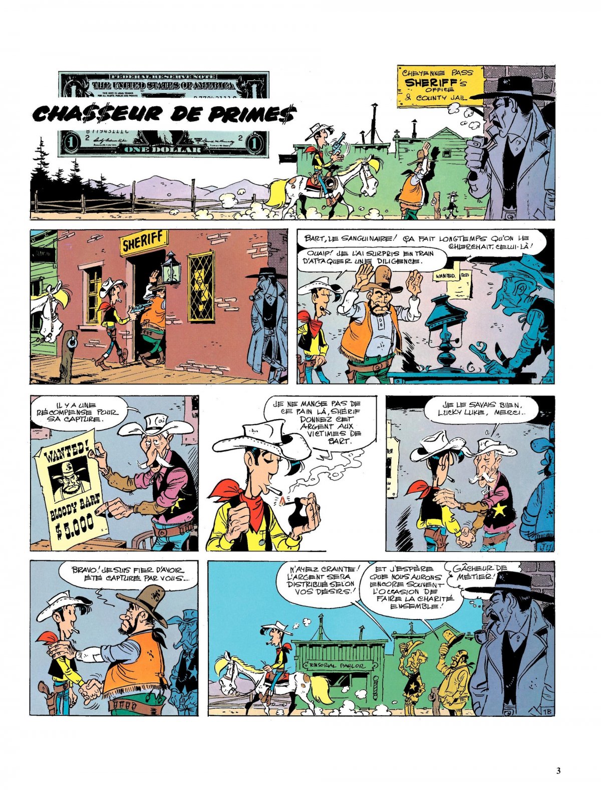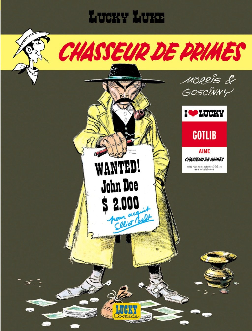 Pour éviter le risque d’une injustice, Lucky Luke décide de retrouver un cheval appartenant à Bronco Fortworth. Mais Fortworth, persuadé que le voleur est le cheyenne Tea Spoon, lance un avis de recherche et une récompense de 100 000 dollars à qui ramènera l’Indien. Le chasseur de primes Elliot Belt (qui ressemble trait pour trait à l’acteur de westerns Lee Van Cleef) est intéressé par l’offre. Il propose à plusieurs reprises à Lucky Luke de s’associer, mais le cow-boy solitaire décline son offre