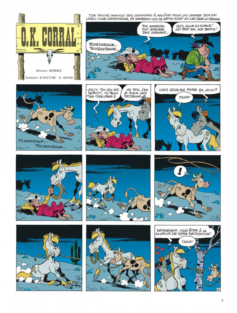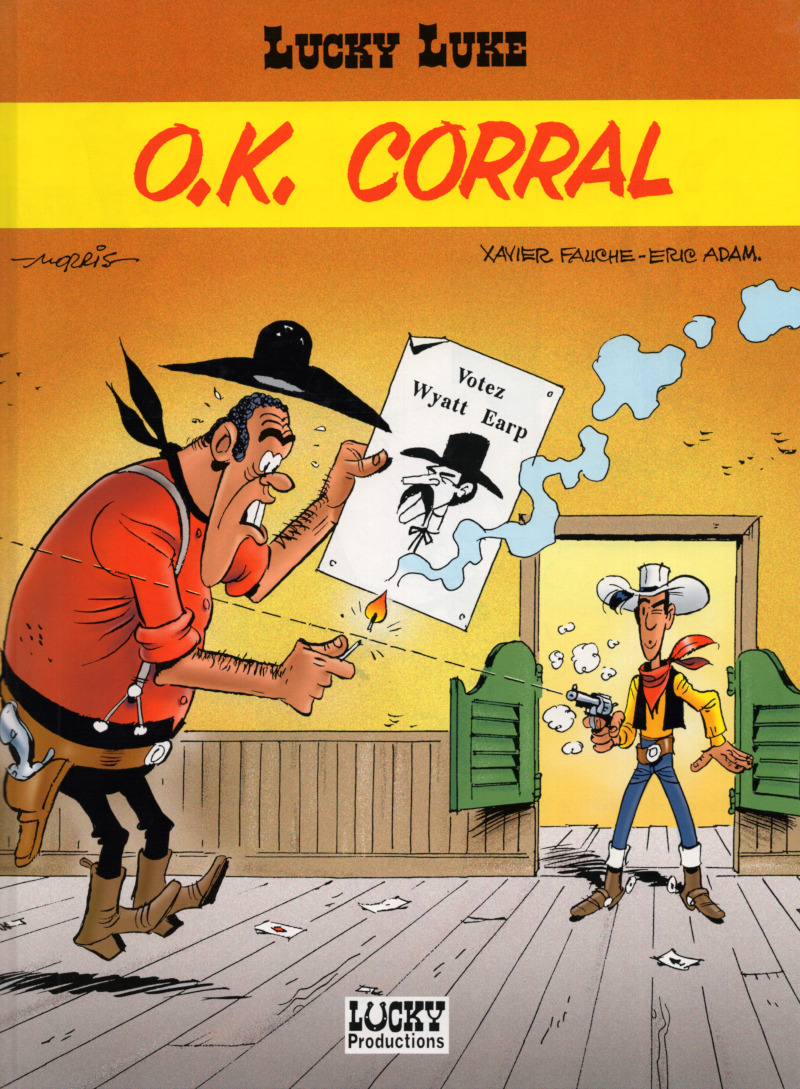 Cette nouvelle aventure de Lucky Luke porte le nom renommé de « OK Corral », encore un clin d’oeil de Morris aux westerns emblématiques qui ont inspiré l’univers de son personnage