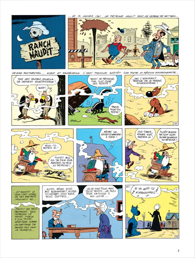 Histoire 4 : "Le flume", de Léturgie. Le flume est une voie d’eau artificielle utilisée pour transporter le bois. Son inventeur tente de faire valider le brevet mais certaines personnes semblent opposées à ce projet. Lucky Luke est chargé de protéger le flume des sabotages répétés.