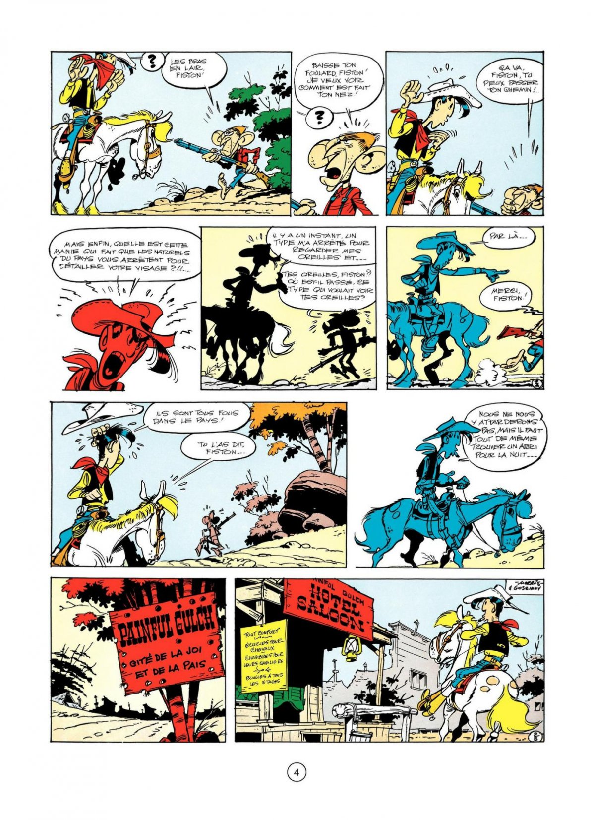 Dans la ville de Painful Gulch, les familles O’Timmins (à gros nez rouge) et O’Hara (à grandes oreilles) se font la guerre depuis des dizaines d’années, et ne savent même plus pourquoi. Lucky Luke est nommé maire de la ville pour tenter de résoudre ce problème