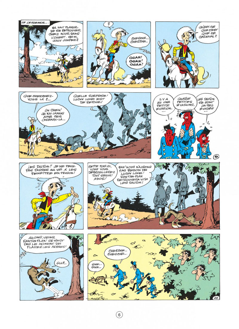 Les Dalton s’évadent. Ils sont suivis par Rantanplan. Après avoir refusé de se charger d’eux une nouvelle fois, Lucky Luke est bien forcé de le faire après qu’ils ont volé des chevaux et une vache chez un de ses amis