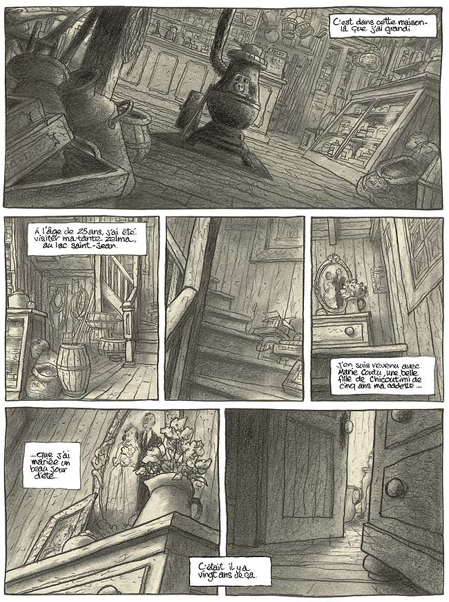 Sur 160 pages, l’album nous dévoile les coulisses du Magasin Général, et c’est un vrai plaisir pour le lecteur de découvrir la démarche de travail de ses auteurs. Dans la préface de Christelle Pissavy-Yvernault tout d’abord, où les interviews croisés de Régis Loisel et Jean-Louis Tripp permettent de comprendre la genèse du projet et la complémentarité de leur talent respectif. Agrémentée de croquis inédits et de photos témoignant du travail en cours dans l’atelier de Loisel, la préface est une magnifique introduction. Ce sont ensuite les 76 doubles pages, sur lesquelles sont reproduits en vis-à-vis les story-boards.