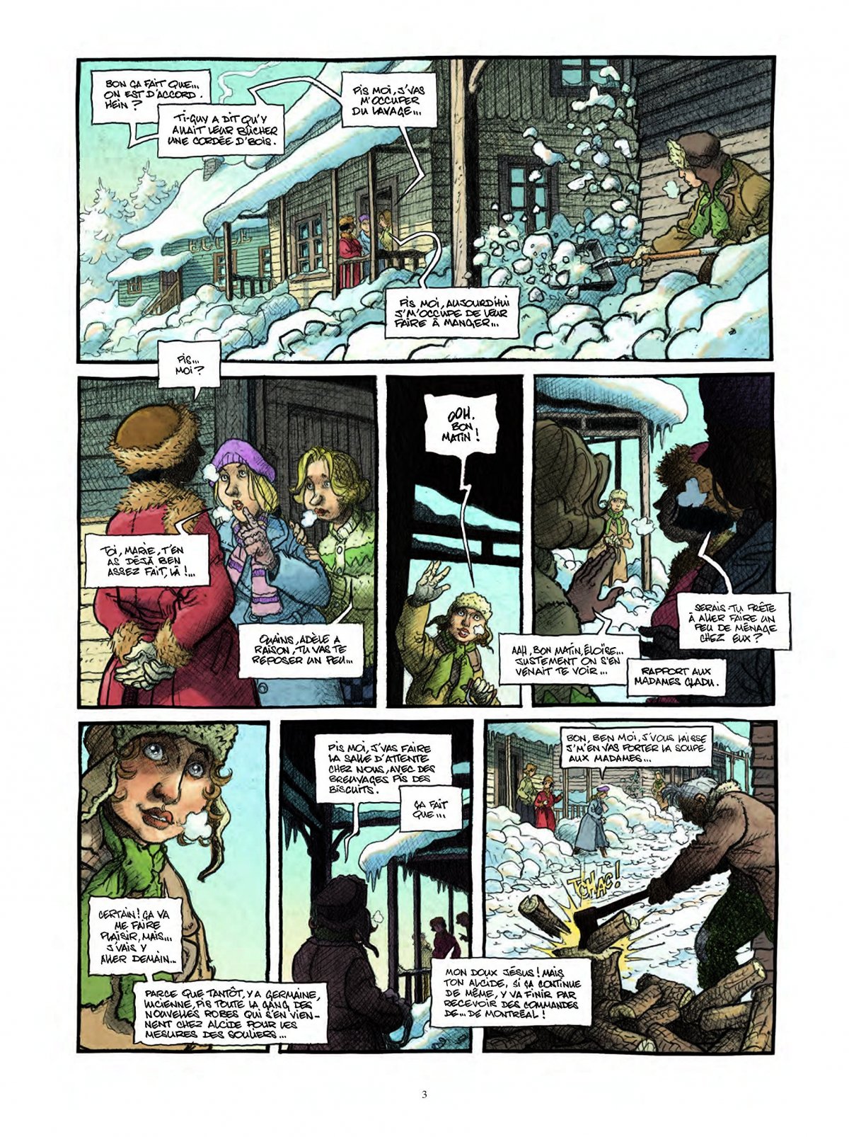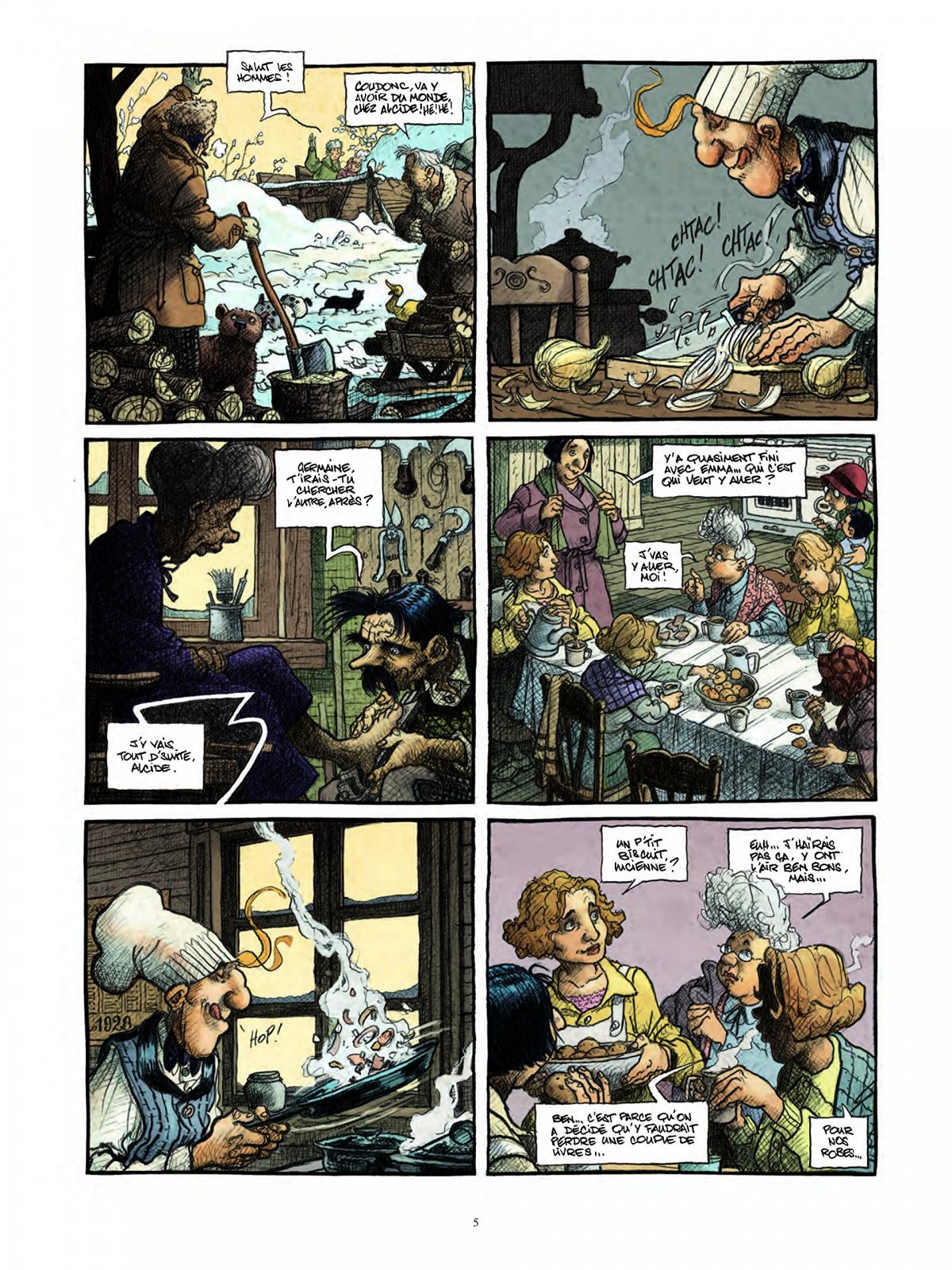 Non, bien sûr, car ce qui imprègne avant tout chaque image, chaque scène, chaque dialogue et chaque personnage de ce spectaculaire dénouement en forme d’apothéose joyeuse, c’est le bonheur ! Loisel et Tripp ont manifestement pris un plaisir fou à mener jusqu’à son terme le destin de chacun des protagonistes de cette truculente histoire chorale à l’humour irrésistible, au fil des quelques mois de l’année 1928 où l’on passe des neiges profondes à la chaleur de l’été sur fond de retour des hommes de leur hivernage. On y apprendra, parmi bien d’autres surprises, ce qu’il advient du bateau du vieux Noël, ce qui tourmentait tant Réjean le jeune prêtre ou encore ce que cachait la grossesse inattendue de Marie... Et le village de Notre-Dame-des-Lacs, au terme de ce final enfiévré célébré comme il se doit par un grand feu de la Saint-Jean, entre à son tour dans la modernité
