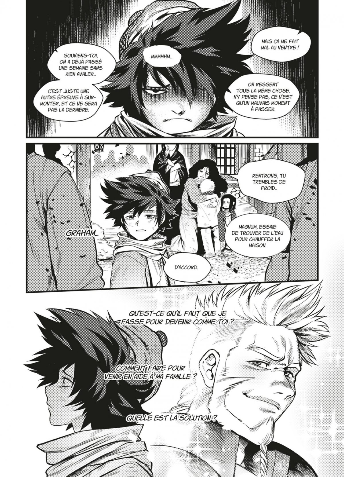 Magnum, un jeune garçon issu des quartiers pauvres du royaume de Vonéra rêve de devenir chevalier pour venir en aide à sa famille. En vagabondant dans la forêt avec son amie Platina, les deux enfants tombent sur le cadavre de Graham, le chevalier légendaire réputé invincible, gisant près de son bouclier. Magnum et Platina récupèrent alors le pavois orné d’une pierre rouge aux reflets incandescents, sans se douter de l’importance de cet artefact, ni du sort funeste qui attend tous ceux qui l’ont possédé...