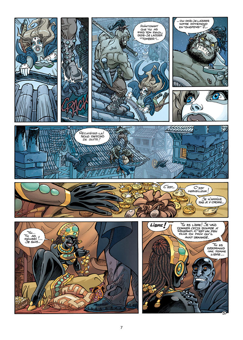 L’AVENTURE CONTINUE POUR LA FAROUCHE ET MYSTÉRIEUSE GUERRIÈRE, QUI ARPENTE LE CHEMIN DE SON PASSÉ. Durkan a enfin retrouvé Marlysa pour lui confier le message de Tatrin. De retour à Dompour, cette dernière constate que son ami d’enfance a disparu. Elle ne peut échapper à un enlèvement fomenté par une horde de barbares, les Kidriks, qui préparent une mystérieuse opération d’envergure. Marlysa apprend ainsi que son village de Tolden court un grand danger. Que veulent ces guerriers sanguinaires et que préparent-ils en secret dans la région de Tolden ? Marlysa arrivera-t-elle à retrouver ses anciens amis : Tatrin, Cilia, Ossian et Stirius, et savoir ce qu’ils sont devenus ? En remontant le fleuve, Marlysa revient sur les traces de son passé... et le voyage pourrait bien être douloureux...MARLYSA CONTINUES HER SEARCH FOR HER PAST.Marlysa discovers that her village, Tolden, is in great danger of being attacked by blood-hungry warriors. As she sails up the river to help her people, Marlysa finds traces of her own past... This journey could be a painful one...