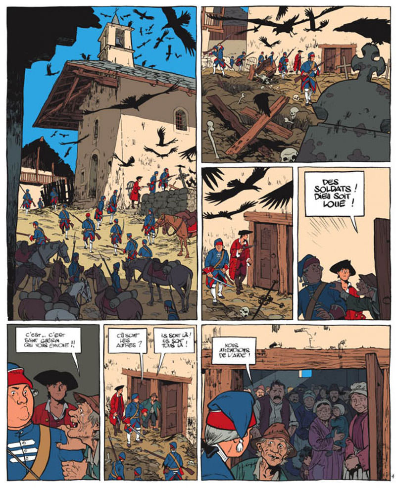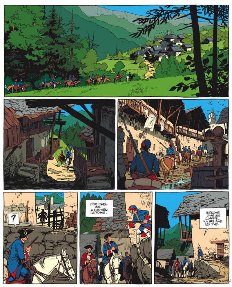 Implacablement, elle décime village après village, assassinant sauvagement des familles innocentes, brouillant les pistes et terrifiant la population des Alpes de ses rugissements. Le problème devient si préoccupant que le Roi a du dépêcher une force appropriée : qui, mieux que ses « dragons » pourraient régler le cas de « la Bête » ? Et si la force brute ne suffit pas, le corps d’armée dispose d’un autre atout : le cousin de leur chef, le célèbre Marquis d’Anaon ! Il n’est peut-être pas la plus fine des gâchettes mais on raconte qu’il a souvent croisé la route du Malin. Plongé en pleine dépression, Le Marquis d’Anaon devra affronter plus d’un démon avant de continuer une route qu’on lui souhaite longue. En effet, il est assez rare d’assister a une telle conjonction de talents : le scénario de Fabien Vehlmann mêle habilement intensité dramatique, humanisme et justesse psychologique. Parfait pendant de cette finesse, Mathieu Bonhomme manie plume et pinceau avec une souplesse et une précision hors du commun, aussi a son aise dans les replis ridés du visage d’un vieux paysan que dans les immenses étendues enneigées des Alpes. Ces deux-la sont jeunes, il est vrai, mais aux âmes bien nées...