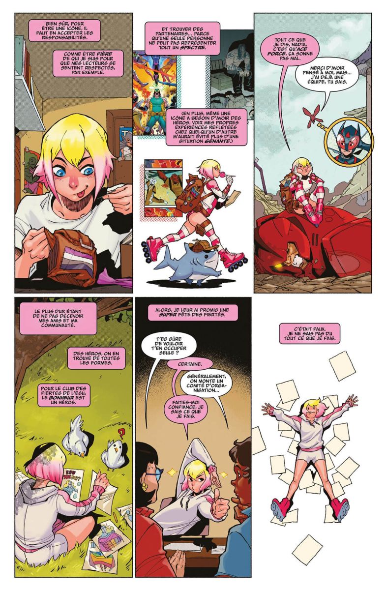 Découvrez de nouveaux héros incarnant la diversité de l’univers Marvel ! Logan Lewis est une jeune bisexuelle qui a juré de protéger sa communauté à Chicago, tandis que la jeune mutante Gimmick, s’élance dans ses propres aventures, après s’être installée à Krakoa. Hulkling et Wiccan ne sont pas au bout de leurs tribulations, et c’est pareil pour Mystique et Destinée... Et ça ne s’arrête pas là ! À l’instar de l’album MARVEL PRIDE paru l’an dernier, cet ouvrage recueille des histoires courtes consacrées aux personnages LGBTQ+ de l’univers Marvel, imaginées par les auteurs les plus progressistes du moment ! En 2024, on ne trouvera pas comic-book plus inclusif que cet album !