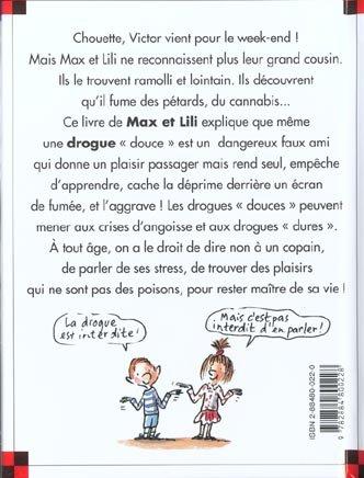 Max et Lili ne reconnaissent plus leur cousin Victor. Ils le trouvent lointain et tout ramolli. Ils découvrent qu’il fume du cannabis... Ce livre explique que même une drogue " douce " est dangereuse : elle rend seul, cache la déprime et l’aggrave !