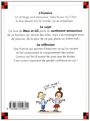 Lili et Hugo sont amoureux, mais le jour où il faut le dire devant tout le monde, ça se complique... Ce livre parle du sentiment amoureux, du bonheur qui donne des ailes, mais aussi de la jalousie, de la peur de ne pas plaire et d’être trahi.