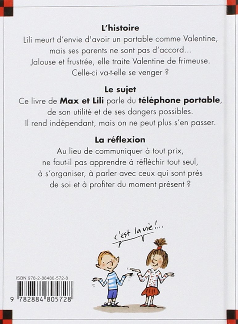 Lili meurt d’envie d’avoir un portable, mais ses parents ne sont pas d’accord... Ce livre montre que le portable permet d’être plus indépendant, mais qu’il peut aussi faire passer à côté du moment présent et de la vraie communication.