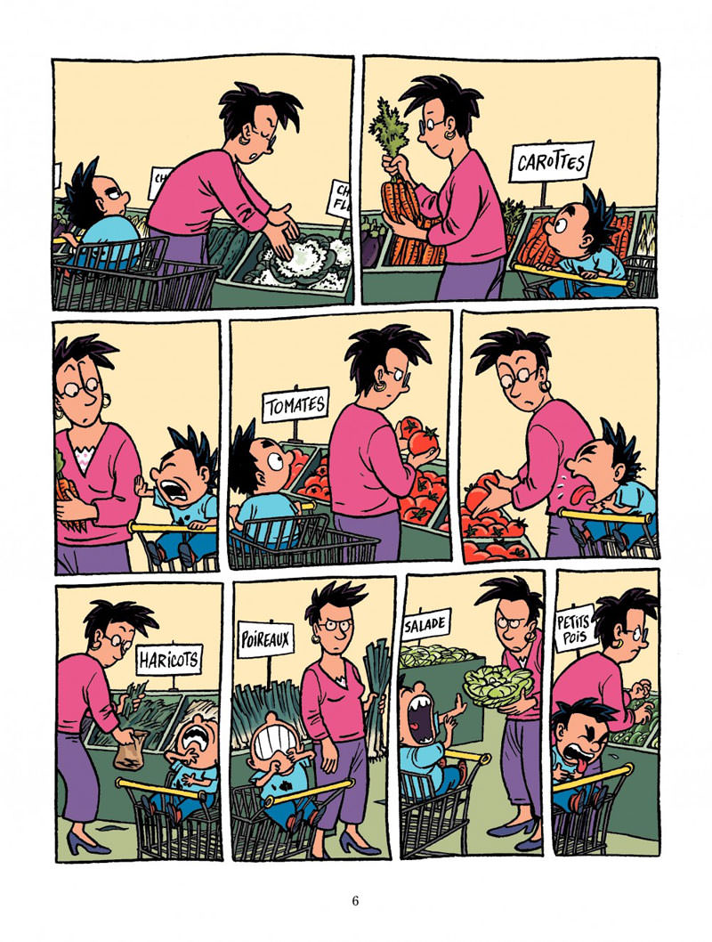 Cette fois, il va mener la vie dure à sa mère qui voudrait bien lui faire aimer les légumes. C’est la sortie de l’école, sa mère vient chercher Benjamin, mais avant de rentrer à la maison, il faut s’arrêter faire des courses au supermarché. Ah non, Benjamin déteste ça, il râle ?! Tant pis, le voilà renfrogné dans le caddie. Horreur, maman prend un chou-fleur et le pose à côté de lui. C’en est trop ! Il déteste les légumes. Puisque c’est comme ça, il se cache dans les rayons du supermarché. Retrouvé par sa maman, il manque encore de se faire écraser en sortant de la voiture ! Trop c’est trop, il est puni dans sa chambre... il l’a bien cherché. Pendant ce temps, maman fait la cuisine, et quand il est l’heure de passer à table, finalement ce n’est pas si mauvais, le chou-fleur préparé par sa maman... Tout est bien qui finit bien, Benjamin se régale ?!
