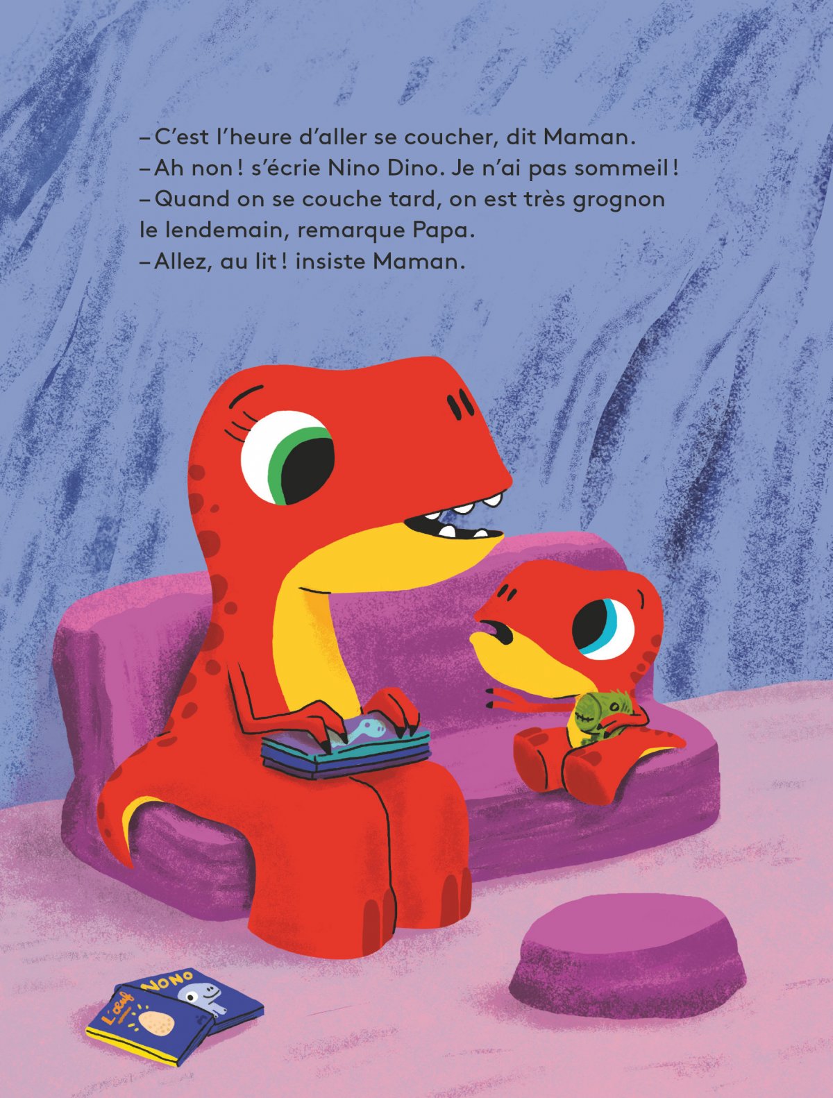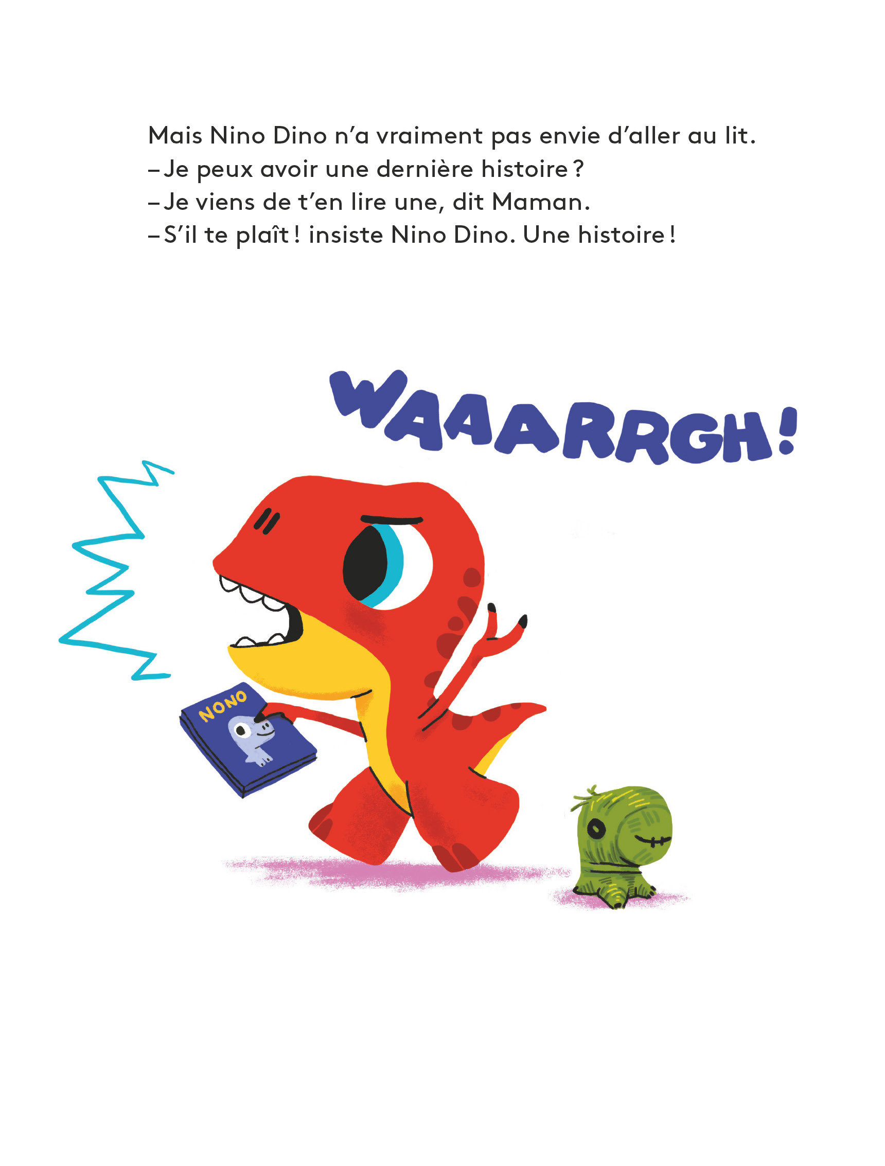 C’est l’heure d’aller se coucher, mais Nino Dino n’est pas décidé. Il n’a vraiment pas sommeil ! Après une histoire, il veut encore boire un verre d’eau, puis aller faire pipi et dire bonne nuit à la forêt des Mastodontes. Nino Dino cherche vraiment toutes les excuses pour ne pas aller au lit…