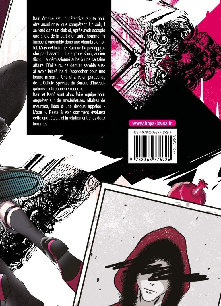 Kairi Amane est un détective réputé pour être aussi cruel que compétent.Un soir, il se rend dans un club et, après avoir accepté une pilule de la part d’un autre homme, ils finissent ensemble dans une chambre d’hôtel. Mais cet homme, Kairi ne l’a pas approché par hasard... Il s’agit de Kanô, ancien flic qui a démissionné suite à une certaine affaire. D’ailleurs, ce dernier semble aussi avoir laissé Kairi l’approcher pour une bonne raison... Une affaire, en particulier, de la Cellule Spéciale du Bureau d’Investigations : « la capuche rouge ». Kairi et Kanô vont alors faire équipe pour enquêter sur de mystérieuses affaires de meurtres, liées à une drogue appelée « Maze ». Reste à voir comment évoluera cette enquête... et la relation entre les deux hommes.