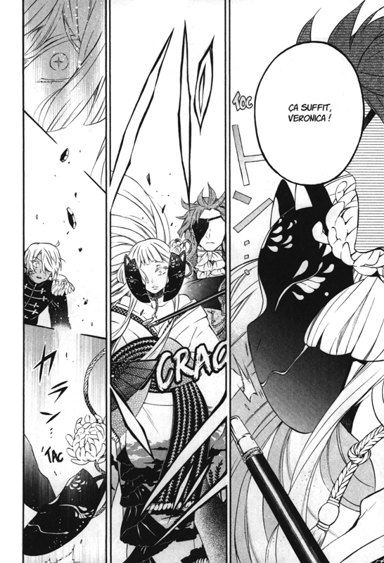 Mais, au même moment, les Charlatans décident de passer à l’action : une étrange mélodie fait perdre la tête à certains invités, qui s’en prennent subitement à leurs pairs ! Dans la confusion générale, Vanitas et Noé tentent d’utiliser le grimoire... avant d’être interrompus par Bestia, une femme au service de la reine, bien décidée à se débarrasser du jeune humain !