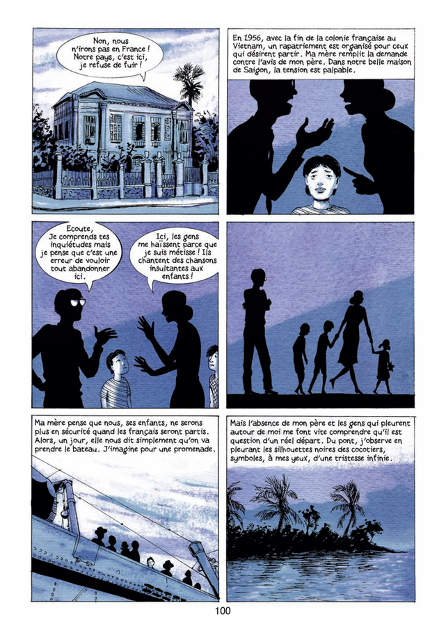 Dans son premier album, Un Automne à Hanoï (en 2004), Clément Baloup racontait quelques moments privilégiés d’un séjour au pays de ses ancêtres à l’occasion d’un stage en école d’art. Avec Quitter Saigon, il donne cette fois la parole à ses proches (dont son propre père), vietnamiens condamnés à l’exil par les mouvements de l’Histoire, les occupations tour à tour japonaise, française et américaine et la victoire des troupes du Nord