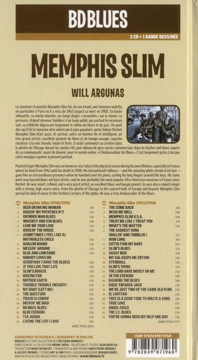 Le chanteur et pianiste Memphis Slim fut de son vivant une immense vedette, en particulier à Paris où il a vécu de 1962 jusqu’à sa mort en 1988. Sa haute silhouette, sa mèche blanche, ses longs doigts « recourbés« sur le clavier, sa présence, étaient devenus familiers à un large public qui partout le reconnaissait, sa célébrité dépassant largement le milieu du blues et du jazz. Memphis Slim était un très grand artiste, excellent pianiste de blues et de boogie-woogie, superbe chanteur à la voix chaude, haute et forte. Il avait commencé sa carrière dans le ghetto de Chicago durant les années 40, puis obtenu de gros succès commerciaux dans le rhythm and blues auprès de sa communauté, avant de devenir, pour le monde entier, « L’Ambassadeur du Blues« . C’est largement grâce à lui que cette musique rayonne à présent partout.