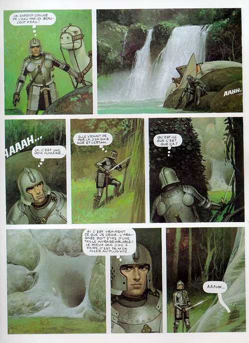 Prisonnier d’une île étrange où des matériaux radioactifs ont transformé les lois physiques, le Mercenaire rencontre d’étonnantes créatures aux pouvoirs télépathiques et de surprenants insectes qui ont développé une civilisation fascinante. Balançant entre rêve et réalité, le guerrier impassible délaisse démons et sorcières pour affronter un monde où la science a pris le pouvoir et combat le fantastique.