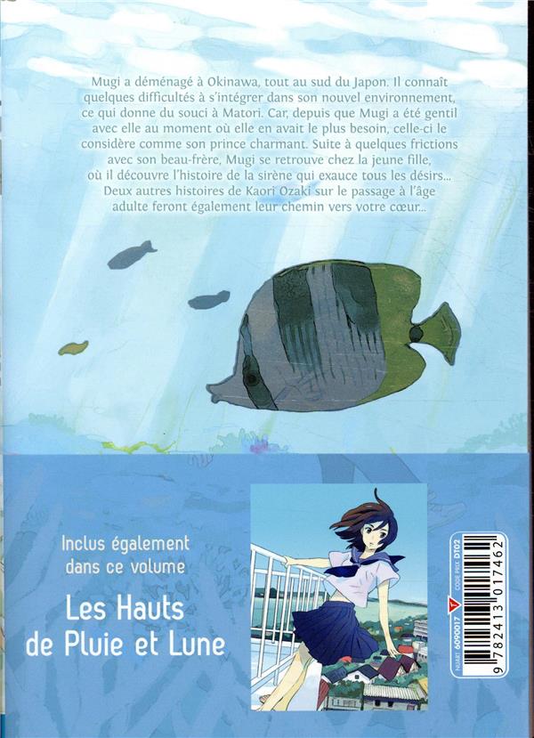 Mermaid Prince : Après le mariage de sa soeur, Mugi a déménagé à Okinawa, et connaît quelques difficultés à s’intégrer. Il va rencontrer une fille dans la même situation que lui. C’est là qu’il entend l’histoire de la sirène qui exauce tous les désirs. Les hauts de Pluie et Lune raconte les sentiments compliqués que doit gérer une jeune fille qui a peur des garçons. Tout dérape quand sa meilleure amie se trouve un copain. Avec Jour de neige, on suit un étrange père et son fils qui viennent se réfugier dans une médiathèque.