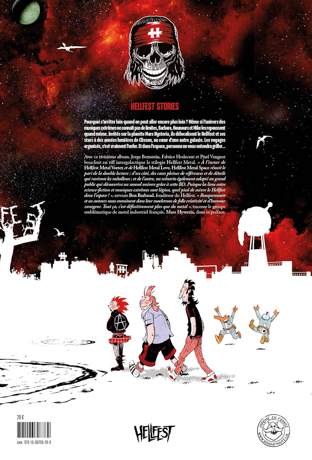 Pourquoi s’arrêter loin quand on peut aller encore plus loin ? Même si l’univers des musiques extrêmes ne connaît pas de limites, Barbara, Nounours et Mike les repoussent quand même. Invités sur la planète Mars Hysteria, ils délocalisent le Hellfest et ses stars à des années lumières de Clisson, au cœur d’une autre galaxie. Les voyages organisés, c’est vraiment l’enfer. Et dans l’espace, personne ne vous entendra griller…