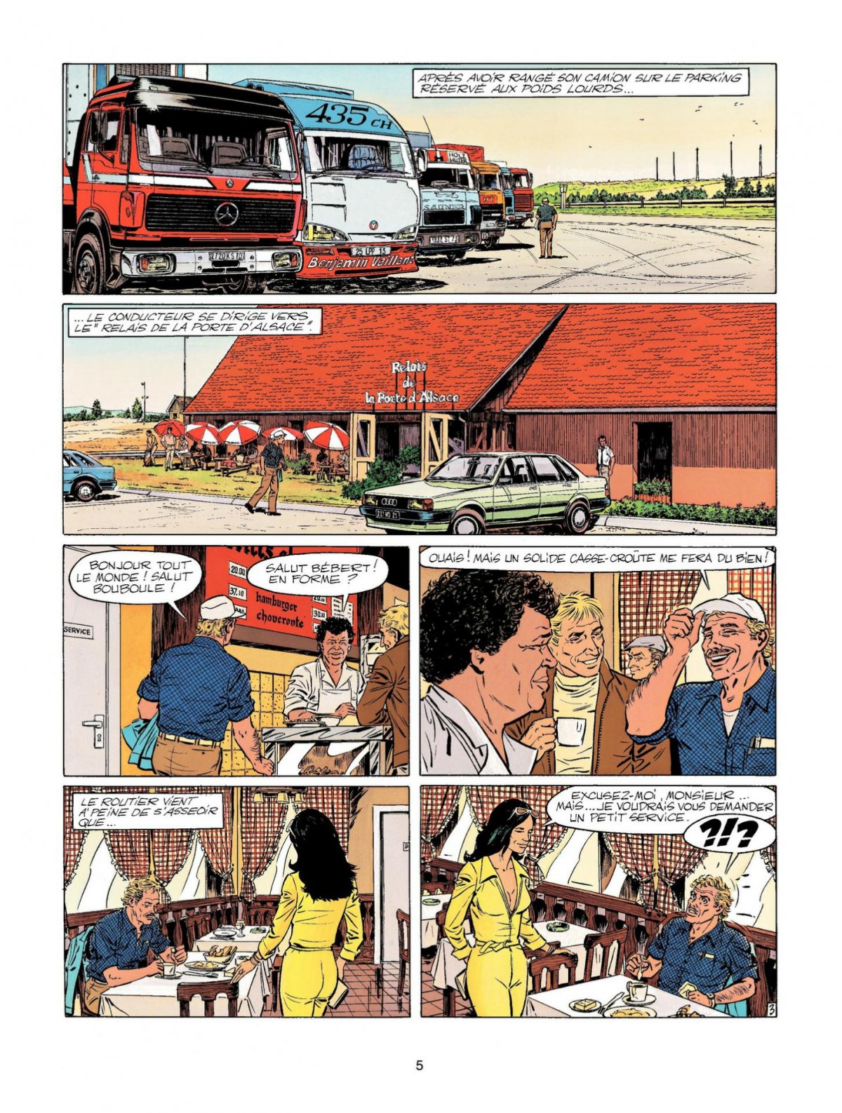 Michel Vaillant, Steve Warson et Yves Douleac se rendent sur le circuit Paul Ricard dans le sud de la France pour y participer à une course de poids lourds. Dans le même temps, Bébert, un chauffeur de Benjamin Vaillant (l’oncle de Michel), se fait voler son camion sur une aire d’autoroute. Une brune pulpeuse ayant servi d’appât, ceci afin de le distraire pendant un temps.