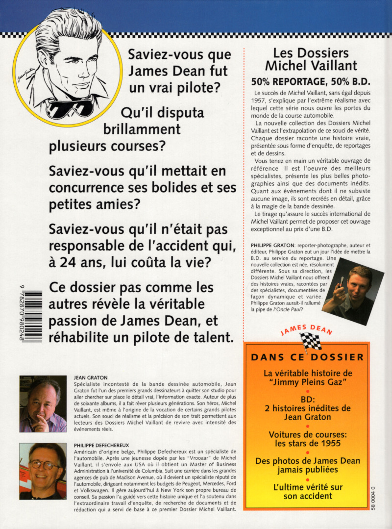 James Dean - La passion foudroyée est le volume 1 de la série Michel Vaillant - Dossiers par Jean Graton, paru en 1995. Selon nos informations, il en existe 2 éditions, dont la principale est éditée par Graton en 1995.
