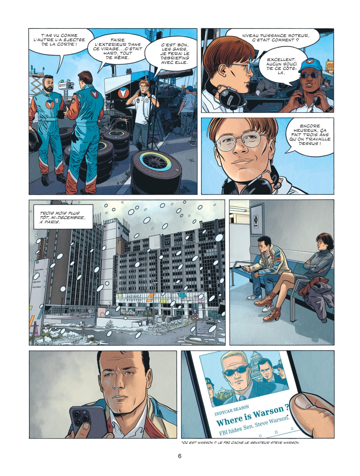 Indycar Grand Prix, Floride. Elsa Tainmont, la pilote canadienne de la Team Vaillante, remplace Michel qui a abandonné la compétition pour accompagner Françoise, atteinte d’un cancer. Mais l’affaire « Sénateur Warson » va tout changer... Car Steve va reprendre le volant d’une Vaillante pour les célèbres 500 miles ! Un stratagème du FBI, qui veut obliger la tueuse qui le traque à sortir de l’ombre, d’autant que Michel et Elsa seront eux aussi de la course. Warson l’ignore, mais une terrible révélation l’attend...