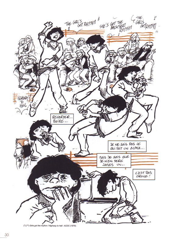Microsillon : (nom masculin) : Le disque microsillon a été le principal support de diffusion denregistrement sonore commercial pendant la seconde moitié du XXe siècle (...) La surface en vinyle de chaque face est parcourue par un sillon en spirale sur lequel le début de l’enregistrement se trouve à l’extérieur et la fin vers le centre du disque. Quest-ce qui nous fait tourner, nous, les mecs ? Un point déquilibre, notre nombril, nos playlists idéales, le rock, les filles ? Mais quest-ce qui nous fait avancer, nous, les mecs ? Lenvie de laisser une trace, une oeuvre, des enfants, des histoires, des histoires de mecs valables, de mecs justes... Lenvie de dessiner, de case en case, de plage en plage, de disque en disque... Ou juste lenvie de danser ? Et tant pis si on est rouillés...