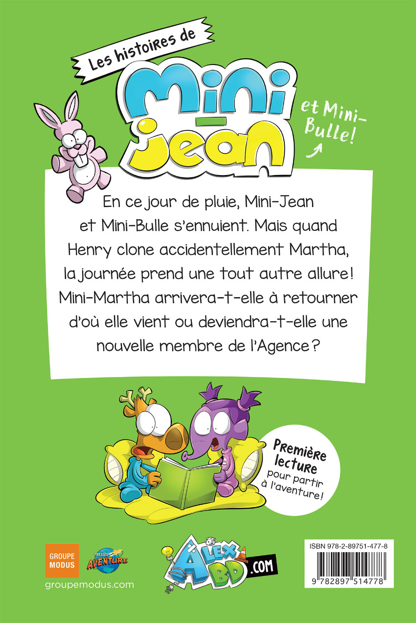 Oups, on a cloné Martha ! est le volume 3 de la série Mini-Jean et Mini-Bulle ! (Les histoires de) par Alex A., paru en 2018. Selon nos informations, il n'en existe qu'une seule édition, publiée par Presses Aventure.