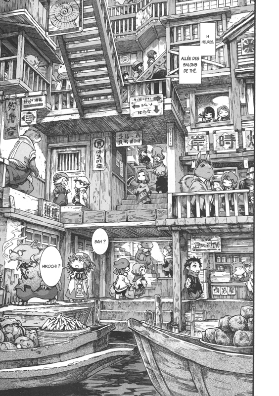 Hakumei et Mikochi font une petite virée dans le port d’Arabi, connu pour son marché en plein air, ses maisons empilées et surtout pour l’Osselet, le bar préféré de nos héroïnes. Elles vont d’ailleurs y passer une soirée assez mouvementée, car l’établissement est plein à craquer et il faut jouer des coudes pour trouver une place. De retour à Makinata, elles vont aider Koharu, leur voisine scarabée, à réaliser son rêve en lui présentant Konju : en effet, la demoiselle coléoptère est devenue la plus grande fan de la ménestrel ! De son côté, Sen a recueilli un petit garçon perdu et s’efforce de retrouver ses parents. Pour cela, elle doit interroger tous les habitants du quartier et ce n’est pas une mince affaire, quand on est farouche et réservée !